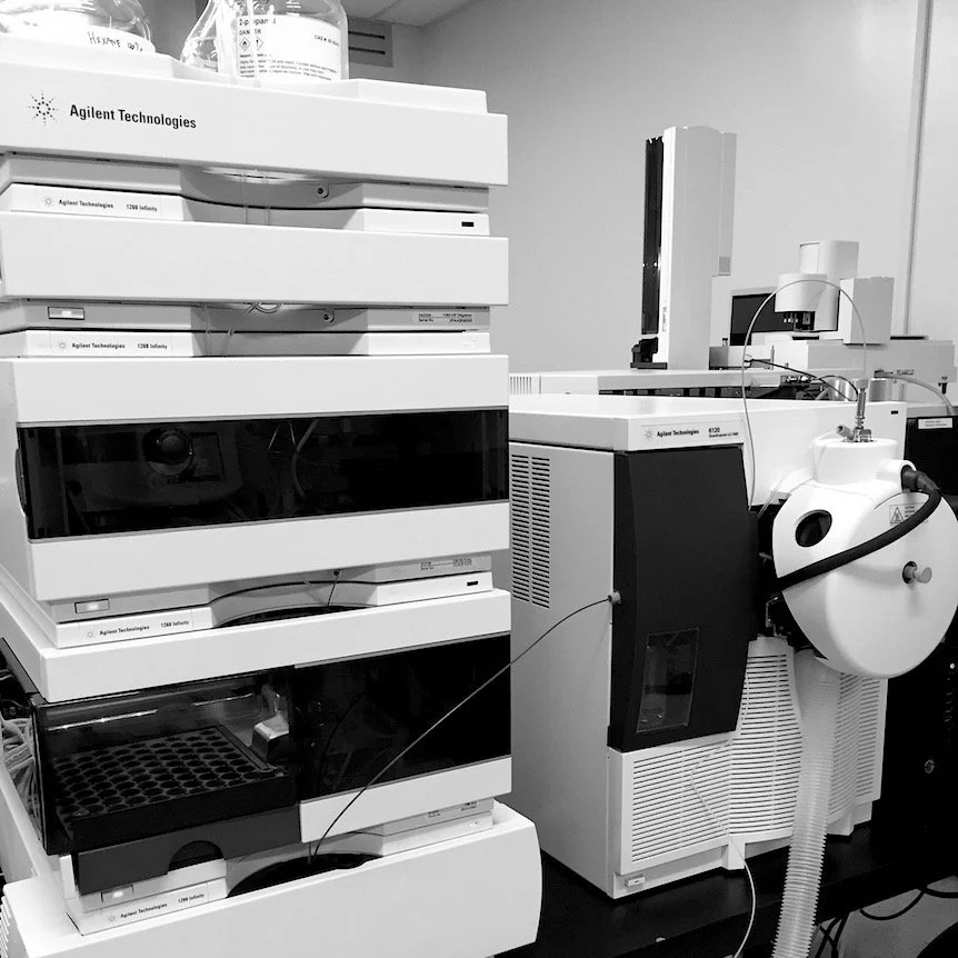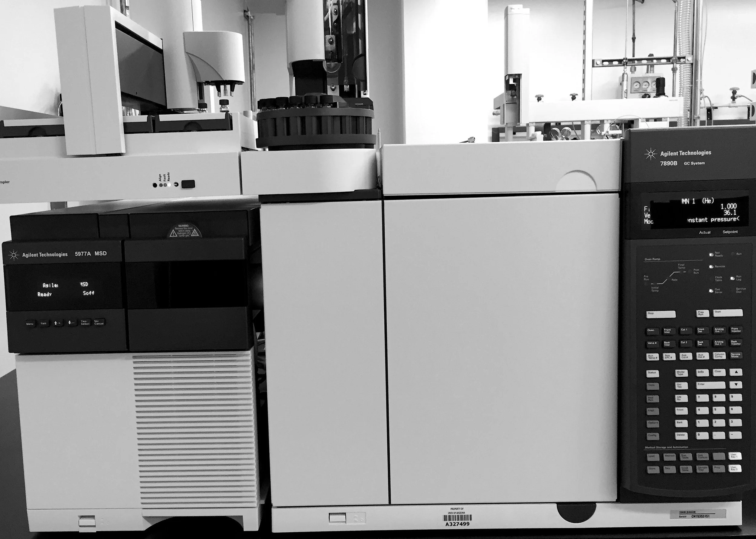 An Agilent 5977 single quadrupole mass spectrometer with a 7890 gas chromatograph. We use this to identify unknown compounds.